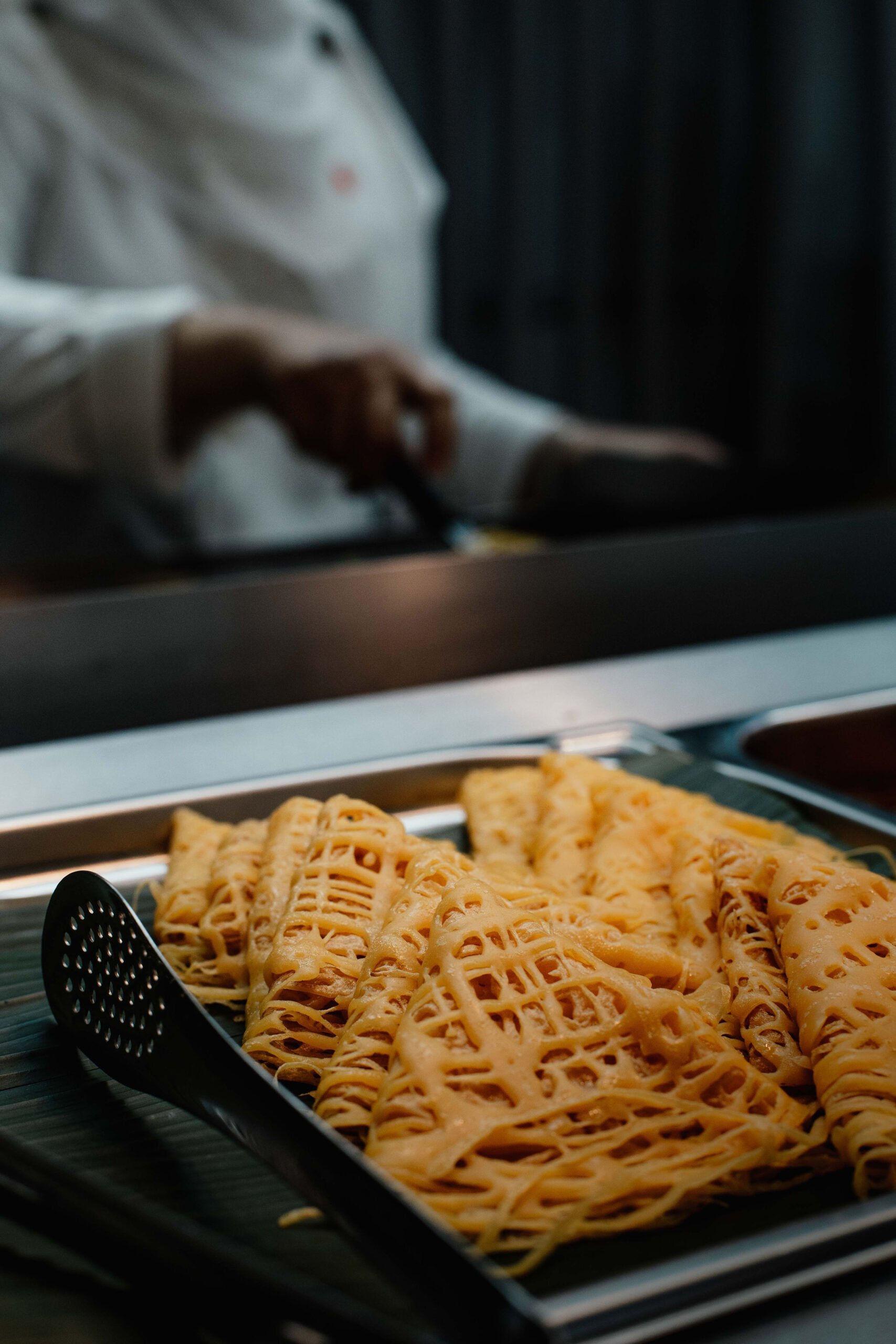 a pancake filled with sweet creamed corn, peanuts, sugar and butter.